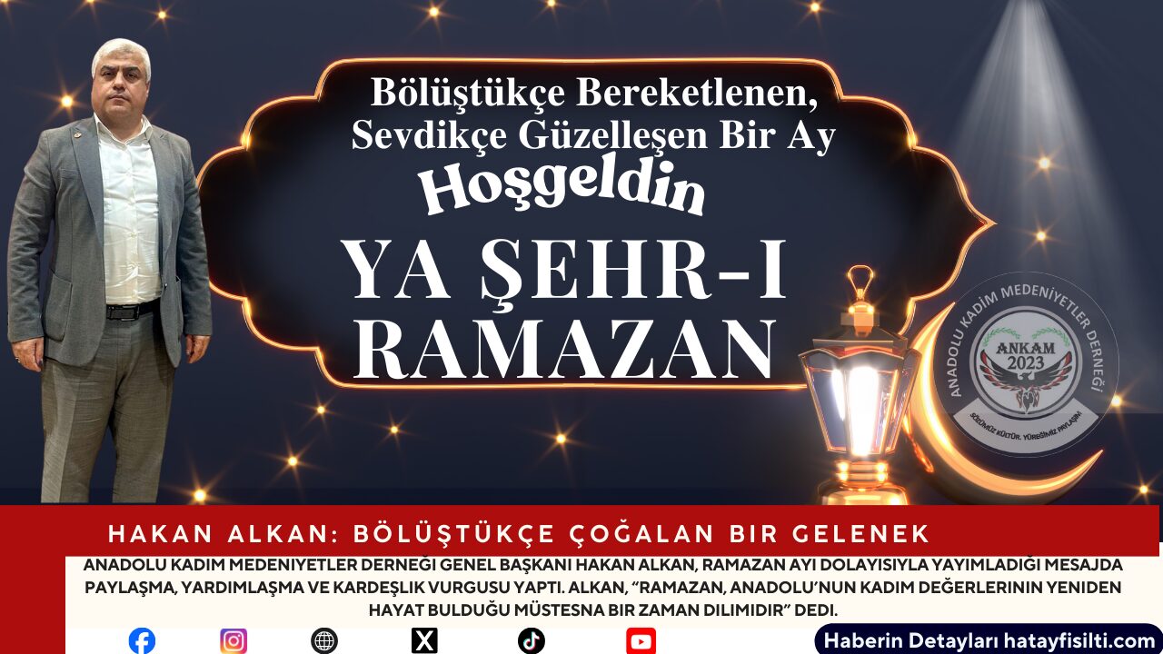 Anadolu Kadim Medeniyetler Derneği Genel Başkanı Hakan Alkan, Ramazan ayı dolayısıyla yayımladığı mesajında birlik, beraberlik ve toplumsal dayanışma çağrısında bulundu.